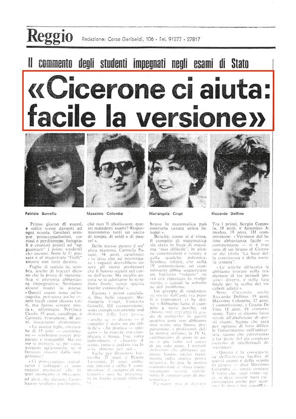 Aa. Vv., Il commento degli studenti impegnati negli esami di Stato. “Cicerone ci aiuta: facile la versione”, Reggio 3 luglio 1976, Reggio, 1976.
