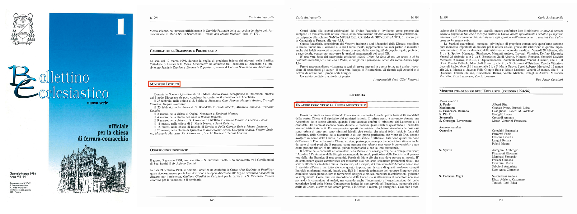Aa. Vv., Ministeri Istituiti, Bollettino Ecclesiastico Ufficiale per la Chiesa di Ferrara-Comacchio 1/1994,