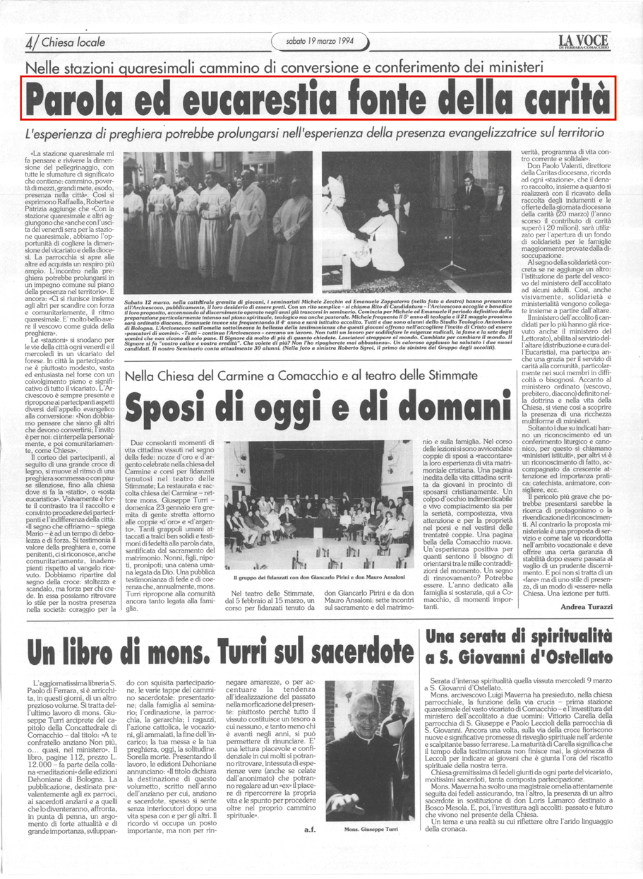 Andrea Turazzi, Parola ed eucarestia fonte della carità, La Voce di Ferrara-Comacchio 11/1994, Opera Arcidiocesana per la Preservazione