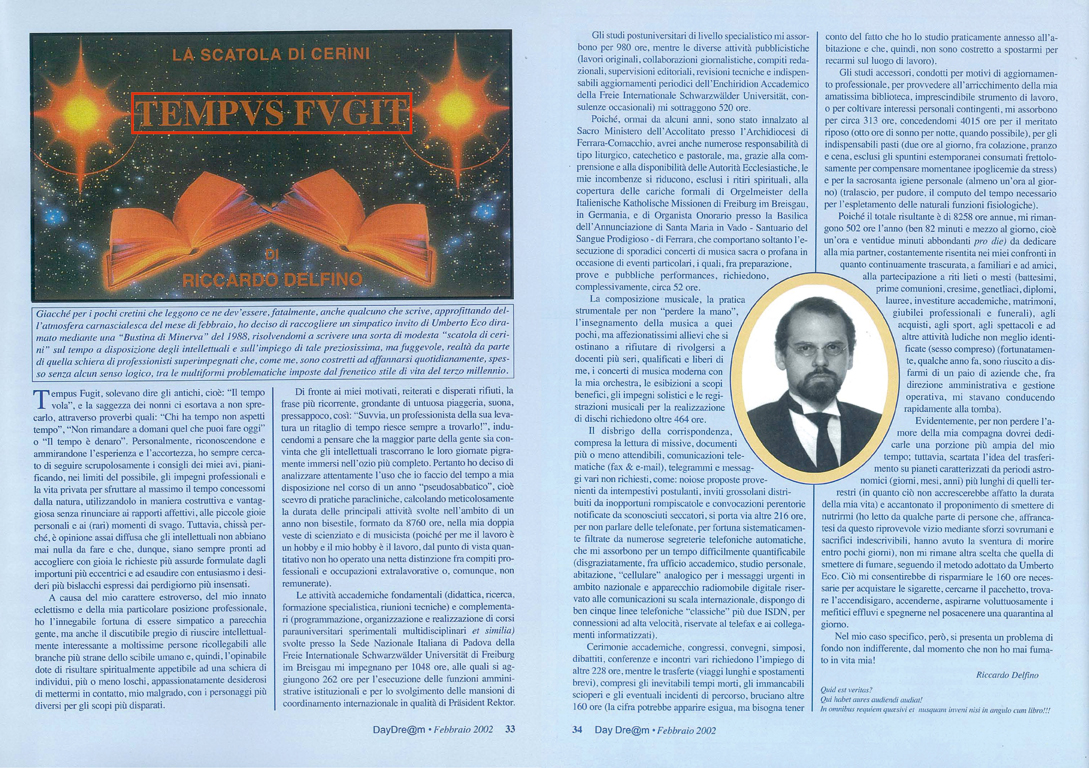 Riccardo Delfino, La scatola di cerini. Tempvs Fvgit, Day Dream 2/2002, Techno Dream, 2002.