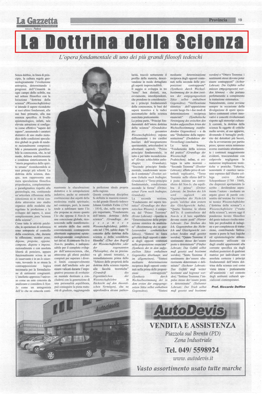 Riccardo Delfino, La Dottrina della Scienza, La Gazzetta Nazionale (Edizione di Padova) 9, 10, 11 e 12/2008, Studio IGPI,