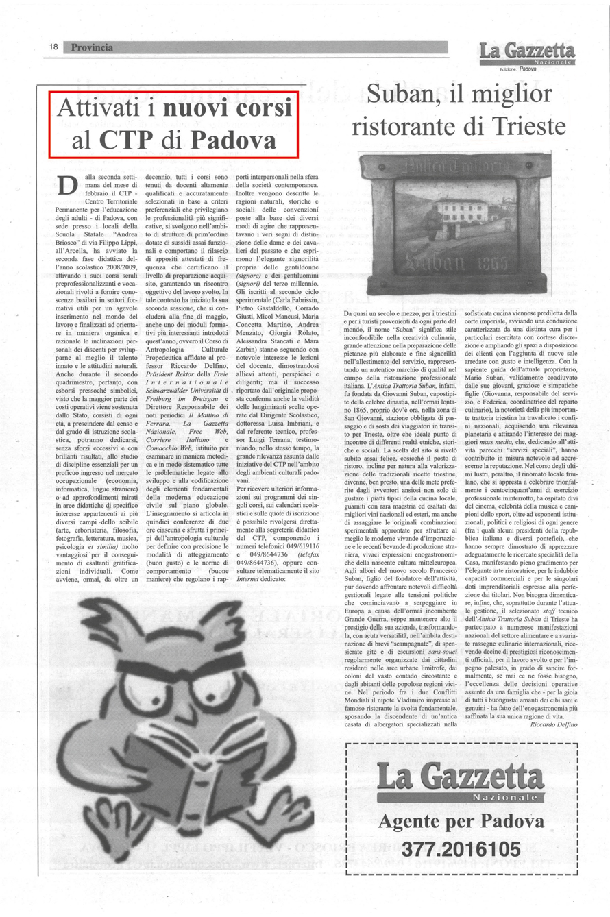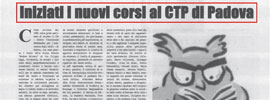 Riccardo Delfino, Attivati i nuovi corsi al CTP di Padova, La Gazzetta Nazionale (Edizione di Padova) 1, 2 e 3/2009, Studio IGPI, 2009.