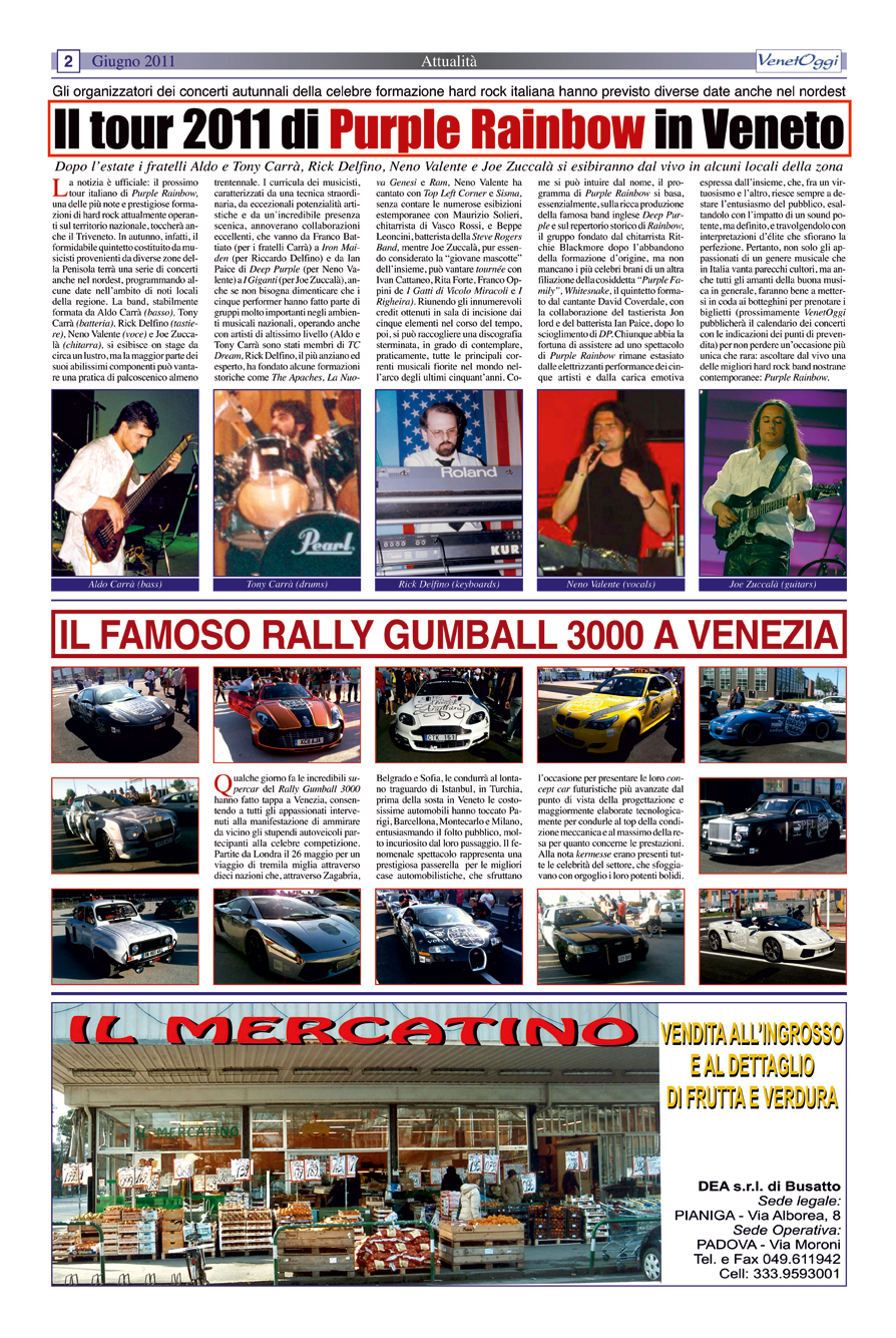Riccardo Delfino, Il tour 2011 del celebre gruppo rock Purple Rainbow toccherà il Veneto, Veneto Oggi 7 e 8/2011, Fotocopoli, 2011.
