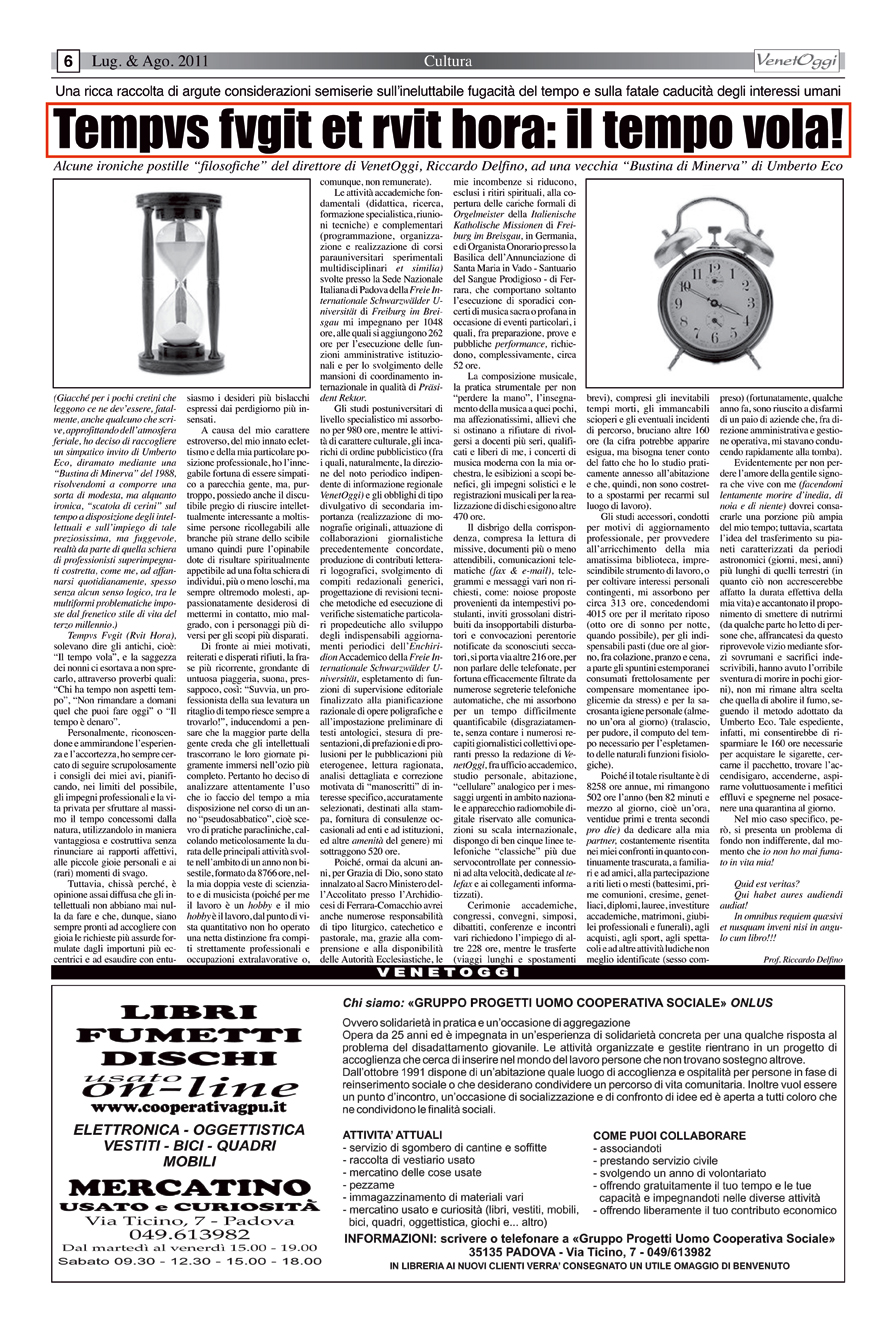 Riccardo Delfino, Tempvs fvgit et rvit hora: il tempo vola!, Veneto Oggi 7 e 8/2011, Fotocopoli, 2011.