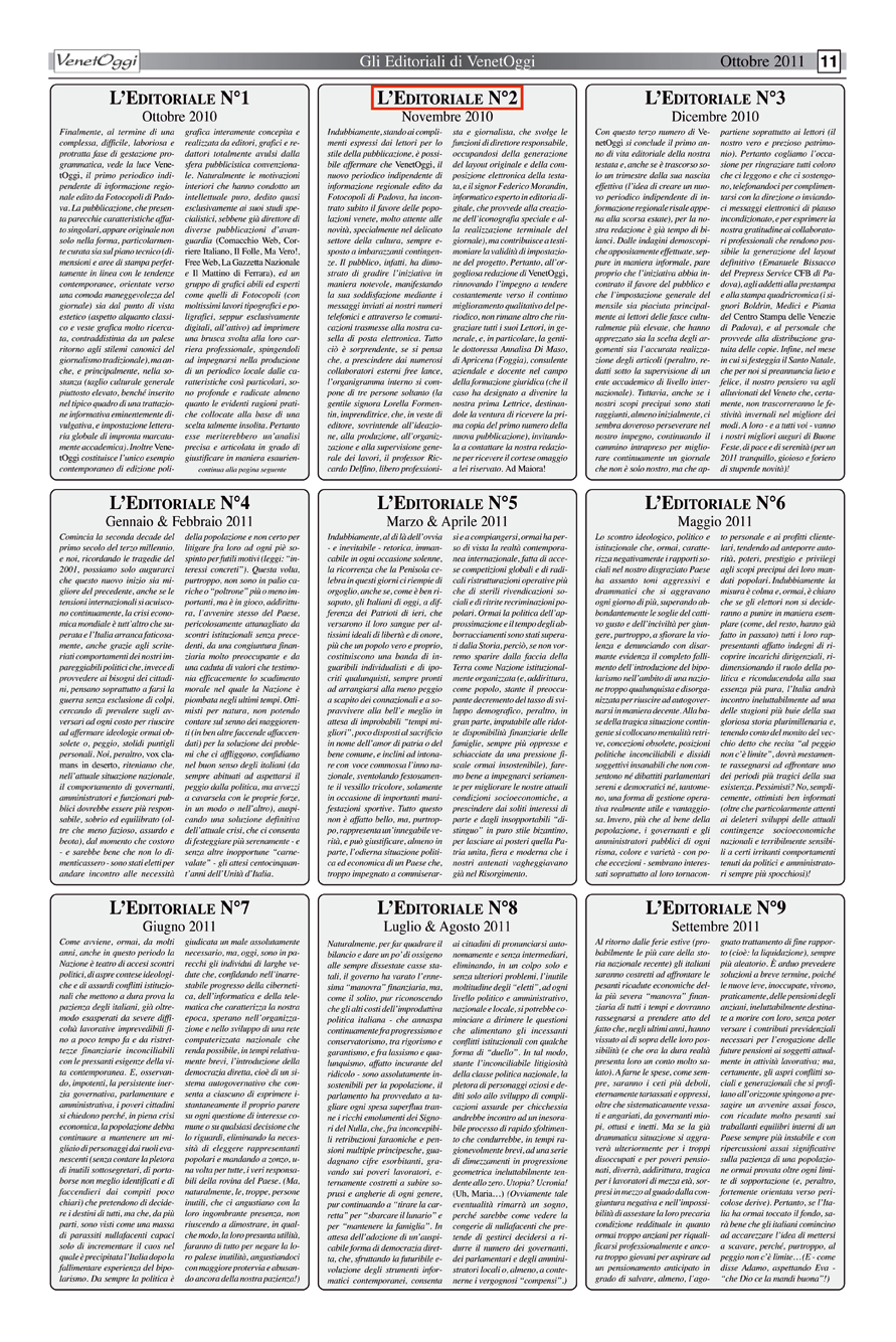 Riccardo Delfino, Gli Editoriali di VenetOggi. L’Editoriale N°2 - Novembre 2010, Veneto Oggi 10/2011, Fotocopoli, 2011.