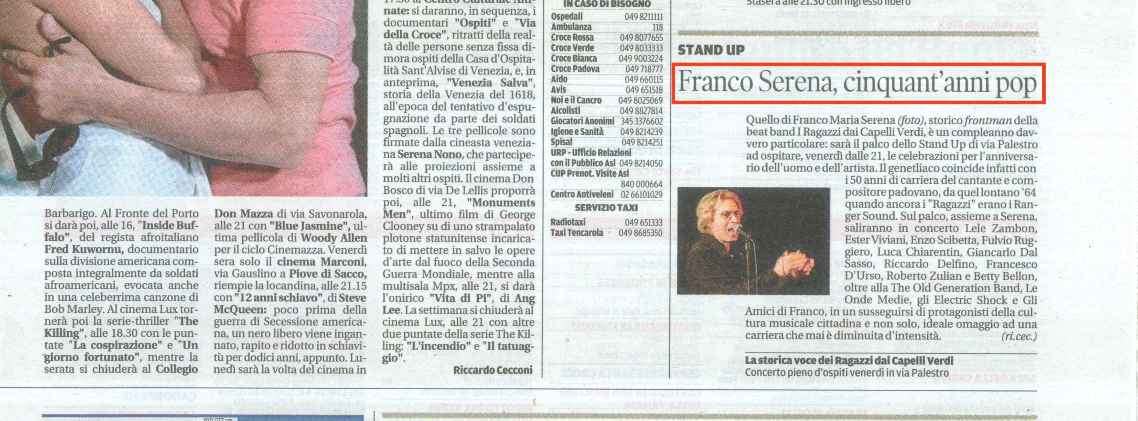 Aa. Vv., Franco Serena, cinquant’anni pop, Il Mattino di Padova 9 aprile 2014, FINEGIL, 2014.