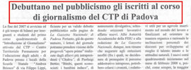 Riccardo Delfino, È iniziato il primo Corso di Giornalismo del CTP di Padova, La Gazzetta Nazionale (Edizione di Padova) 10/2007, Studio IGPI, 2007.