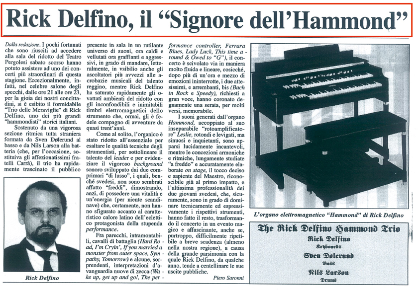 Riccardo Delfino, Il “Signore dell’Hammond”, TPI, 1996.