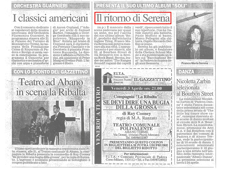Aa. Vv., Il ritorno di Serena, Il Mattino di Padova 3 aprile 1998, FINEGIL, 1998.