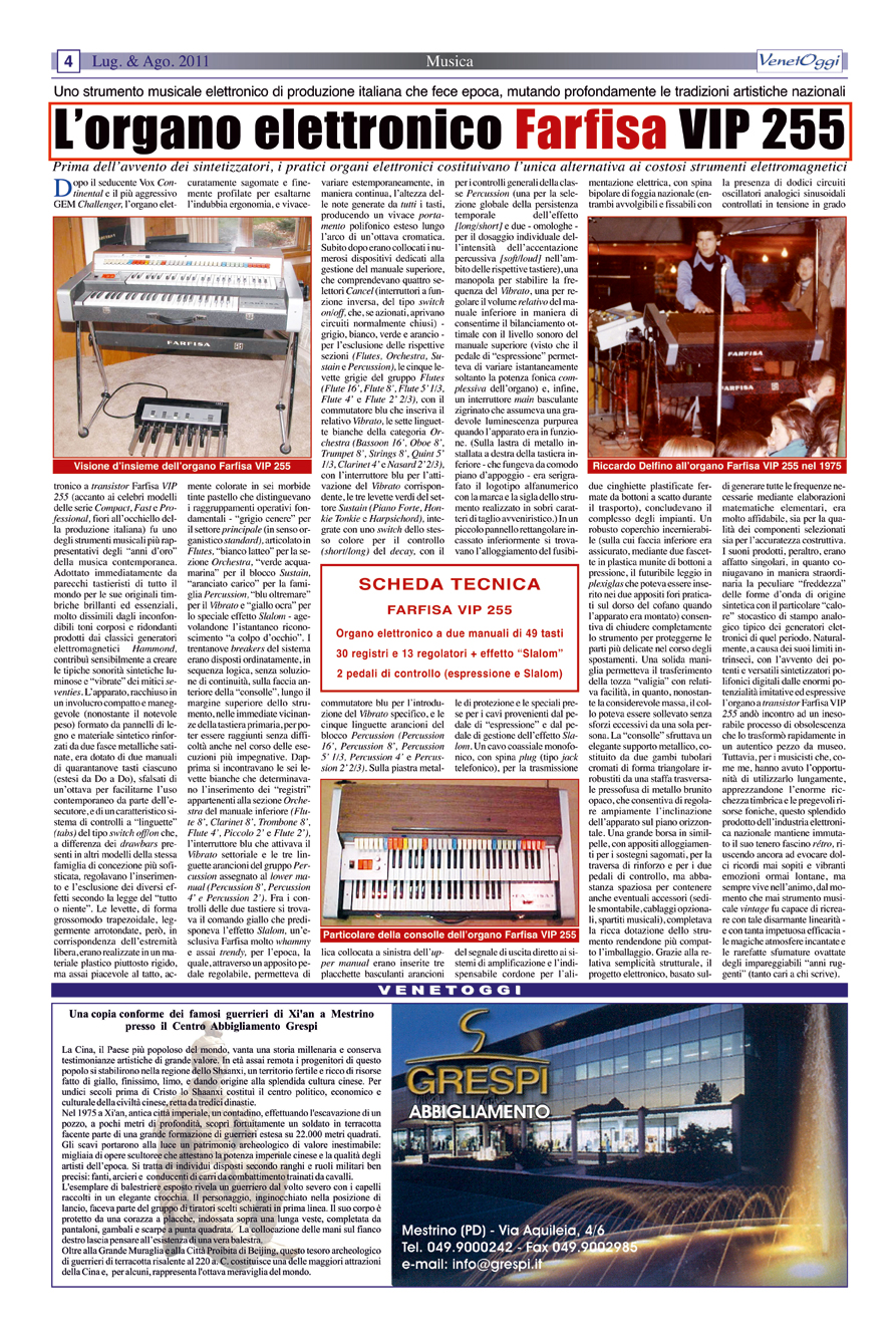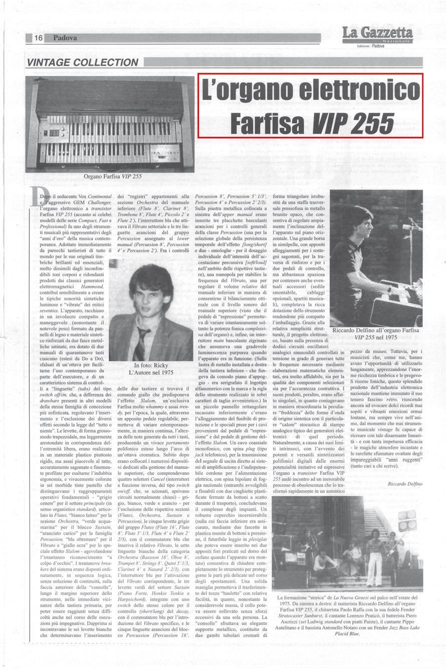Riccardo Delfino, L’organo elettronico Farfisa VIP 255, La Gazzetta Nazionale (Edizione di Padova) 3 e 4/2008, Studio IGPI, 2008.