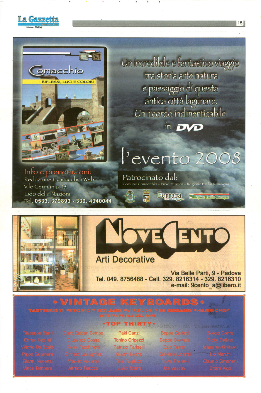 Riccardo Delfino, Vintage Keyboards. Top Thirty, La Gazzetta Nazionale (Edizione di Padova) 5, 6, 7 e 8/2008, Studio IGPI, 2008.