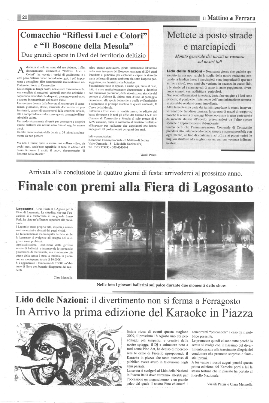 Aa. Vv., “Comacchio: riflessi, luci e colori” e “Il Boscone della Mesola”, Il Mattino di Ferrara 5/2009, Studio IGPI, 2009.