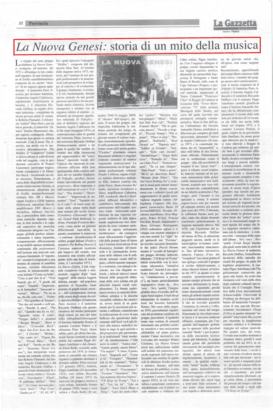 Riccardo Delfino, La Nuova Genesi: storia di un mito della musica, La Gazzetta Nazionale (Edizione di Padova) 7, 8 e 9/2009, Studio IGPI, 2009.