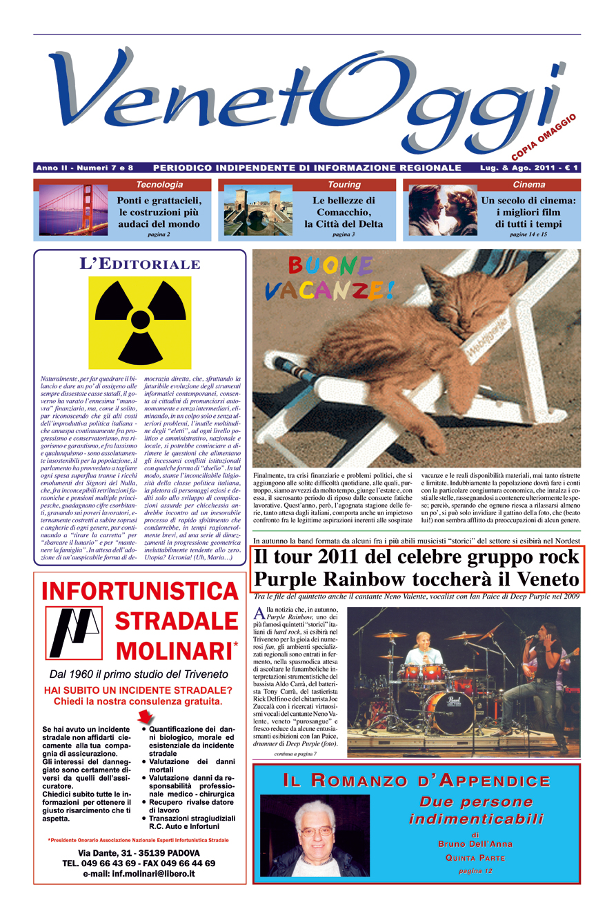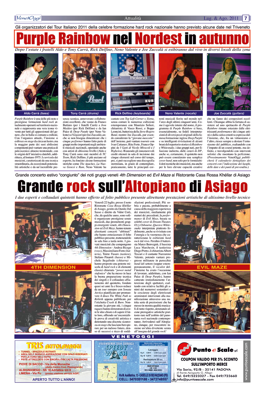Riccardo Delfino, Il tour 2011 del celebre gruppo rock Purple Rainbow toccherà il Veneto, Veneto Oggi 7 e 8/2011, Fotocopoli, 2011.