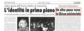 Paolo Cavallari, Un altro passo verso la Chiesa Ministeriale, La Voce di Ferrara-Comacchio 7/1994, Opera Arcidiocesana per la Preservazione