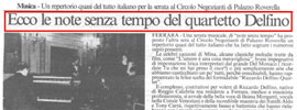 Aa. Vv., Ecco le note senza tempo del quartetto Delfino, La Nuova Ferrara 14 gennaio 1997, FINEGIL, 1997.