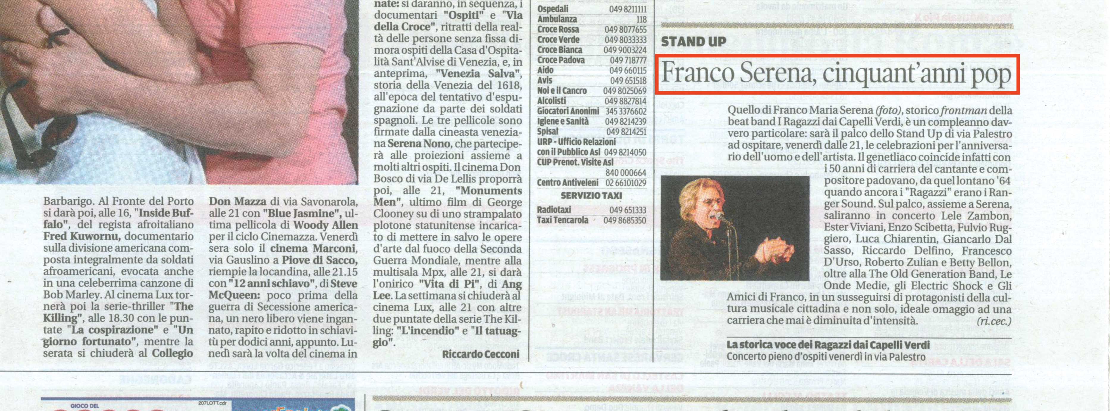 Aa. Vv., Franco Serena, cinquant’anni pop, Il Mattino di Padova 9 aprile 2014, FINEGIL, 2014.