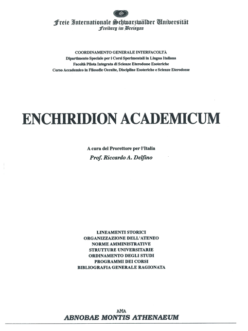 Riccardo Delfino, Freie Internationale Schwarzwälder Universitäts Enchiridion, Abnobae Montis Athenaeum, 2000.